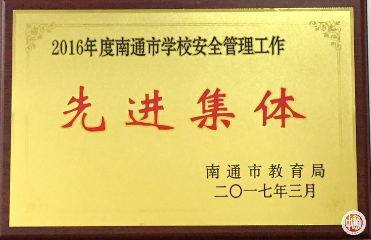 为进一步激励学校安全管理工作更加扎实有效地开展,南通市教育局对2016年度南通市学校安全管理工作先进集体进行评选表彰。根据《关于评选2016年度南通市学校安全管理工作先进集体和先进个人的通知》(通教安[2017]4号),我校被表彰为先进集体。