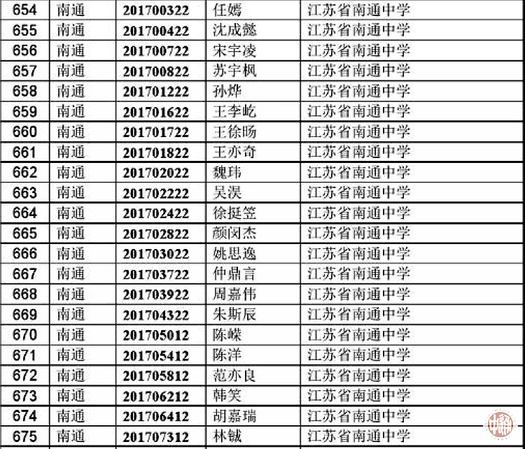我校参赛学生中,3人进入江苏省前46名,22人获一等奖,33人获二等奖,各项获奖指标均列南通大市第一。获奖名单如下: