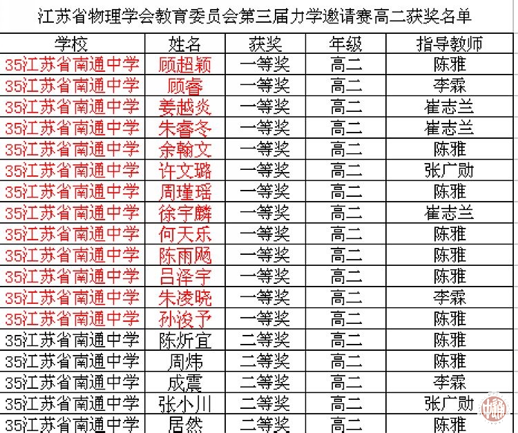 喜 报 来源:本站原创 发布时间:2017-06-04 15:11:19 浏览次数: 次 【字体:小 大】 喜 报 我校高一、高二同学参加江苏省教育学会物理教学专业委员会组织的“第三届力学邀请赛”,共有20位同学获得一等奖,14位同学获二等奖。 分享到: 【打印正文】