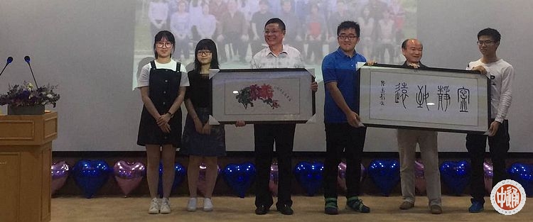 陆禹彤同学代表高三AP全体学生向陈文辉书记,刘忠保校长献上了自己精心创作的两幅书画作品,以表达对母校三年培养的感谢之情!仪式结束之际学生们纷纷给自己心爱的老师献上了充满爱的礼物。三年前他们选择国际班,三年后他们更坚信当初选择的正确。