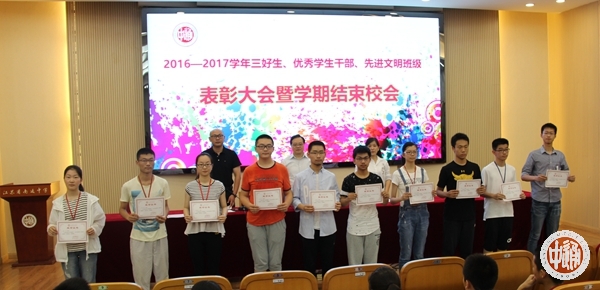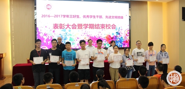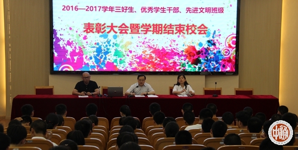 6月30日上午,我校在科学楼三楼报告厅举行学年度优秀学生先进集体表彰大会,学生处主任滕旻彦宣读表彰决定,沈惠祥副校长到会讲话,肯定全校师生一学年以来取得的可喜成绩,并就暑假学习生活向同学们提出了希望和要求。