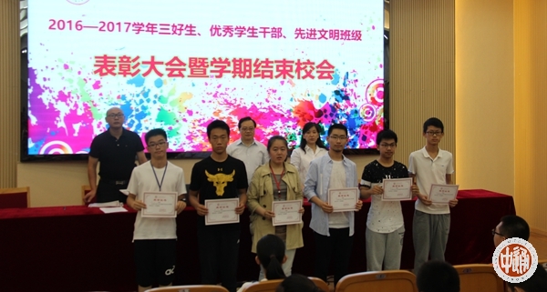 2016—2017学年度,我校全面贯彻党和国家的教育方针、切实推进难忘教育,涌现出一批德、智、体全面发展的三好生、优秀学生干部和先进(文明)班级。其中一部分同学自身全面发展的同时,乐于为学校、班级和同学服务并在同学中起到了先锋模范作用,被授予“校级三好生、优秀学生干部标兵”光荣称号;为了发扬成绩,鼓励先进,促进全校学生全面发展,经研究决定表彰朱斯辰(上图优秀学生代表发言者)等502名三好生,姚心怡等458名优秀学生干部,高一 8等 26个先进(文明)班级。获奖名单如下(所有班级为现班级):
