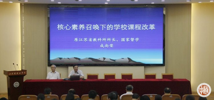 7月1日上午,我校2017年教师暑期校本培训集训进行。原江苏省教科所所长、国家督学成尚荣应邀回母校,为全校教师作题为《核心素养召唤下的学校课程改革》专题讲座。讲座由副校长刘忠保主持。