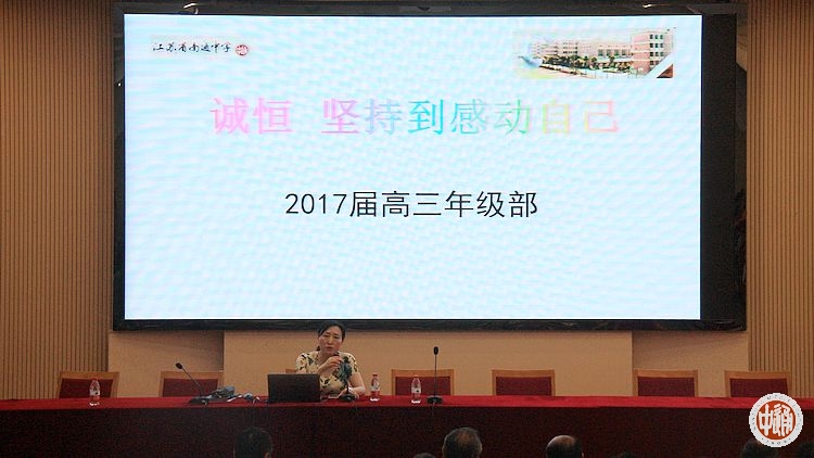 活动中,陈春霞、乔学琴、杨建楠、徐海菊、唐仁霞、赵静仪、蔡利永等七位教师代表,分别从班级管理、备课组建设、临界生转化、优秀生培养等方面作了大会交流发言,在分享经验的同时,也提出了教育教学过程中的反思性意见。教务处副主任、2017届高三年级部主任钱明华基于我校学生高考成绩的相关数据,对本届高三的教育教学及高考情况进行了总结和整体分析。教务处副主任、2018届高三年级部主任顾军代表2018届高三作大会表态发言。