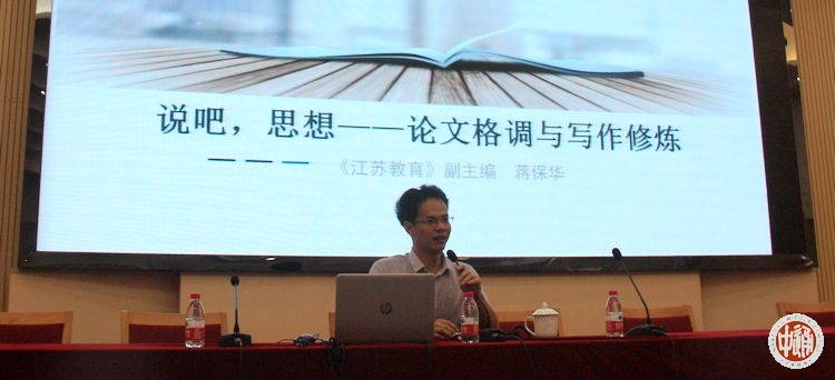2017年暑期校本培训:蒋保华副主编专题讲座 来源:本站原创 发布时间:2017-07-03 11:28:51 浏览次数: 次 【字体:小 大】 7月2日上午,学校特邀《江苏教育》副主编蒋保华来校为全校教师作题为《说吧,思想——论文格调与写作修炼》专题讲座。讲座由教科处主任陆军主持。 蒋保华副主编从教育教学论文是什么、为什么要写教育教学论文、如何撰写教育教学论文三个方面,为全体教师做了专业指导。 分享到: 【打印正文】