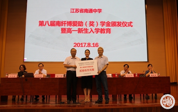 “南纤博爱助(奖)学金”是由南通醋酸纤维有限公司捐资设立的,每年向我校捐赠人民币20-25万元,定向奖励品学兼优的优秀学生和资助品学兼优的经济困难学生。优秀毕业生奖学金和升学助学金的颁发安排在每年的8月进行,学年度优秀奖和进步奖在每年9月份,学年度助学金的颁发时间在每年的1月份,今年已经是第八届。