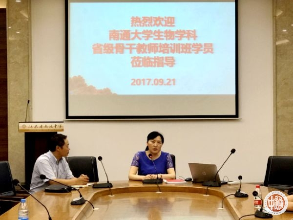 9月21日,由江苏省教育厅主办、南通大学承办的高中生物骨干教师培训班的学员到我校跟岗学习一天。陈建云副校长代表学校致欢迎词,向学员们介绍了通中的百年历史,并对“学校的办学特色”进行了解读。