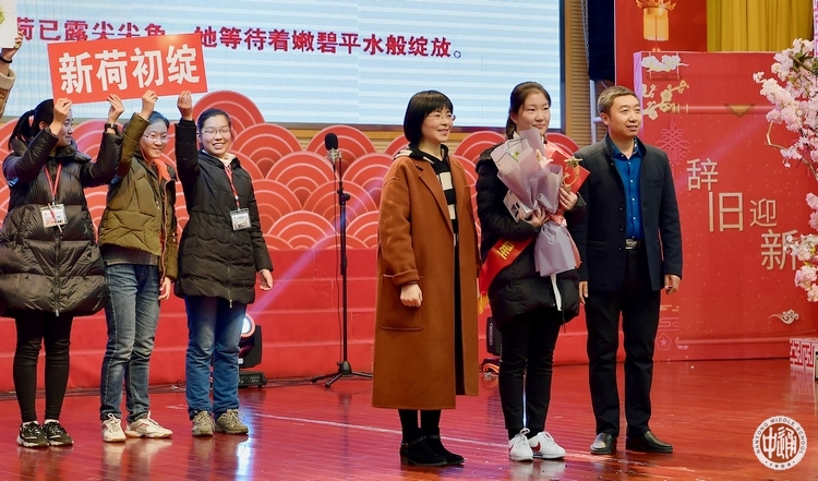 颁奖典礼上,成锦平校长发表了热情洋溢的新年致辞。成校长代表学校领导班子向全校师生员工、离退休老同志、海内外校友以及所有关心支持通中事业发展的社会各界朋友致以最诚挚的问候和最美好的祝福;一年一度的欢庆盛典是通中人自己的节日,是广大师生弘扬精神、挥洒才艺的精彩舞台;从年度“难忘教师”的身上,感受到了通中老师们呕心沥血、传道授业,播撒一路书香的可敬;从十大“校园明星”的身上,欣赏到了通中学子们挥洒智慧、求知探索、放飞青春梦想的可贵;他们都是通中优秀群体中的杰出代表,他们的事迹也折射出通中师生引领风范、追求卓越的蓬勃之姿;通中春华秋实,穿越百年,光芒依旧,活力依旧;2017年,学校荣获首届“全国文明校园”的最高殊荣,学校“难忘教师”杨建楠老师被推选为可敬可爱的“中国好教师”,同学们投身学习、投身竞赛,走近大学、走近大师,深入社区、深入企业,展现了智慧,播撒了汗水,奉献了爱心,提升了自我,获得了一个又一个令我们骄傲的成绩,不负自己如诗如歌的青春岁月。成校长指出,2019年,学校将迎来110周年华诞,新的一年,希望全体“通中人”为挚爱的“通中”共同谱写奋发有为的精彩华章;相信无论岁月如何更替,时光如何变更,“诚恒”精神永远会激励着全校师生不断进取,铸就辉煌!最后,成校长祝愿全校师生和海内外所有校友在新的一年里身体健康,事业进步,阖家幸福,万事顺意!