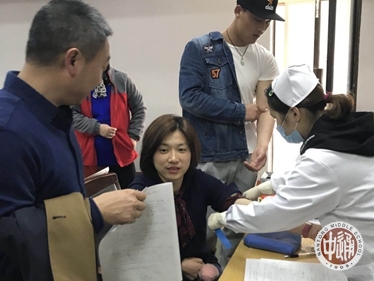 教职工们按照医务人员的要求认真填写了献血信息表,进行了征询、血样采集和身体检查。