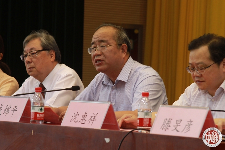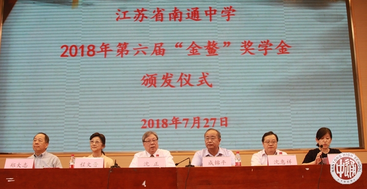 7月27日上午,2018年“金鳌奖学金”颁奖仪式在健雄馆隆重举行。台湾程欲明学术基金会董事长沈正先生;台湾程欲明学术基金会执行董事、台湾一粒麦子基金会董事、台湾肇明公司、明登公司董事长程文晋女士;台湾程欲明学术基金会董事、台湾欣铨科技公司监察人郑大志先生;台湾程欲明学术基金会董事王渡女士;台湾程欲明学术基金会董事、台湾大学机械系教授兼系主任、美国加州理工学院机械所博士黄美娇女士;台湾科技大学电子工程系教授、台湾大学电机博士林丁丙先生;台湾程欲明学术基金会顾问、申华化学工业有限公司前总经理邵康乐先生;台湾程欲明学术基金会秘书林宜燕女士;台湾程欲明学术基金会干事(南通)彭怡和先生,以及我校成锦平校长、沈惠祥副校长出席了颁发仪式。仪式由学生处主任滕旻彦主持。新高三全体学生参加活动。