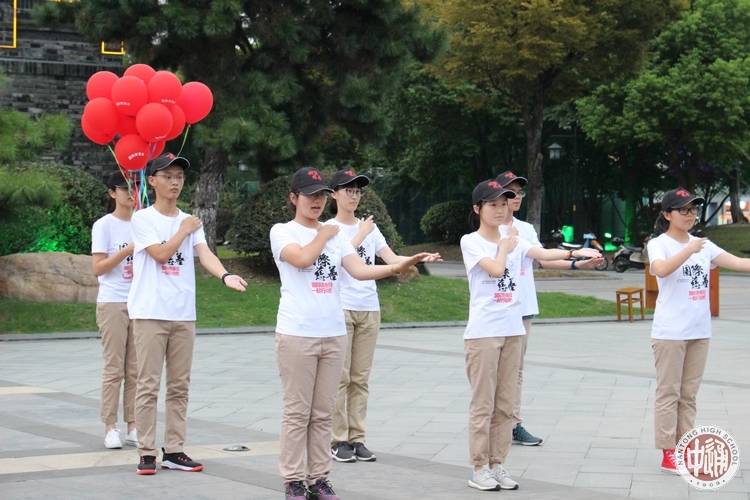 傍晚6时许,下班高峰期,同学们分别在钟楼前的市民广场和通中校门口迅速集结,他们以课桌为道具,以纸杯为打击乐器,现场集体演唱了一曲《稻香》,轻快的音乐节奏,辅之以动感的街舞表演,热情的气球放飞等形式,吸引了广大市民的围观。一曲演绎完毕,随着“您的一片爱心,他的未来可期”宣传横幅的拉开,全体人员迅速地结束表演,有序离开现场。