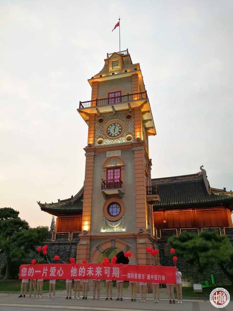 为纪念在1997年9月5日逝世的特里萨修女,联合国将每年9月5日定为“国际慈善日”,旨在客观认识并动员全世界人民、非政府组织和利益相关者通过志愿者和慈善活动帮助他人。今年9月5日也是我国第三个“中华慈善日”。为响应南通市慈善总会发起的“我行一善”慈善志愿者快闪行动,9月5日下午,校团委组织高二学生会和高一合唱团的同学在市民广场和学校门前开展了一次快闪活动。