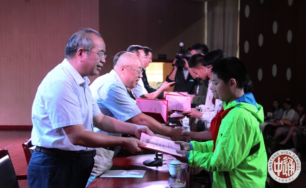 颁奖仪式上我校高一新生代表刘畅发表获奖感言,她认为荣誉代表过去,面对未来应怀抱更高的期盼。在掌声和鲜花后面,更需要不忘初心,砥砺前行。