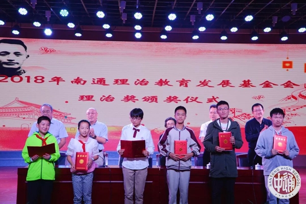 10月9日上午, 2018年南通理治教育发展基金会理治奖颁奖仪式在通师一附崇益楼二楼报告厅隆重举行。朱理治之子,原中国社会科学院副院长、南通理治教育发展基金会管理委员会会长朱佳木,中国大百科出版社原党委书记周小平,南通理治教育发展基金会理事长季军,南通市教育局局长郭毅浩,我校校长成锦平,以及通中和一附两校近百名师生代表参加颁奖活动。