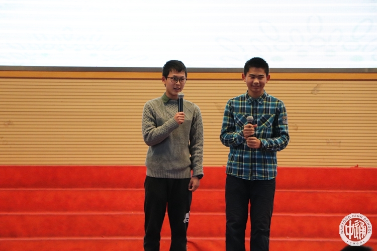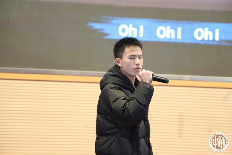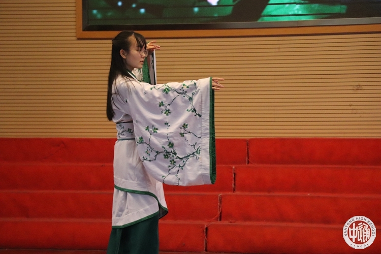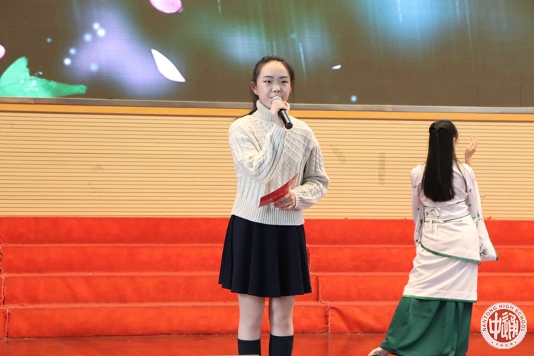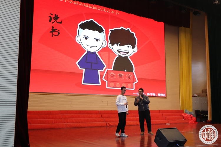 首先登场的高一(13)班陈宇钖、陆栩言带来一段相声《说书》,他们以轻快幽默的节奏、少年的视角进行吐槽,带给大家欢乐;而高二(8)班罗铮、徐绳素的相声《奇妙的化学反应》则向观众们传达了青年学子对于恋爱问题独到的看法;高二(18)班李蔡慧带来了舞蹈《雨霖铃》,典雅的汉服,轻曼的舞蹈是她对于古典美最生动的诠释;高一(9)班黄铭宇、顾芊霓,翁昕的配音节目《蜡笔小新》,带同学们重返久违的欢乐童年;高一(9)班陈明欢、周聿馨的配音《影》,又将观众瞬间拉回到时局纷乱、群敌环伺的情境中,表现出鲜明的角色特点;随后出场的高一(14)班邵胜楠以高度的技巧性演绎了舞蹈《点绛唇》,表现出女为悦己者容的羞涩俏皮;高三(16)班赵少博同学的独唱《消愁》用歌声传递出面对烦恼时积极的态度;高二(1)班德曲同学的独唱《Always Online》,以独特动人的声线展现了青春花开一样的美好;高一(17)班冯禹博、黄未的相声《校园生活》则以调侃的语气表达了对老师的感恩和敬爱,令人感动;最后登场的高一(4)班阳光大男孩史恒屹带来独唱《Shape Of You》,表现了少年正青春的朝气,为整场演出画上了圆满的句号。