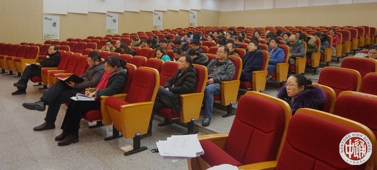 1月2日下午,学校在科学楼三楼报告厅召开2018年度领导班子述职述廉民主测评会。市委政法委依法治市工作处处长韩伟、市教育局组织宣传处处长沈健出席测评会。会议由校党委书记陈文辉主持。全体中层以上干部、学科主任、年级组长、备课组长、党支部支委、民主党派主委、各馆室部门负责人、工会委员、工会组长参加测评会。