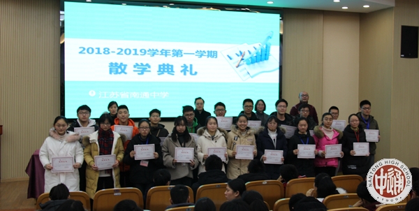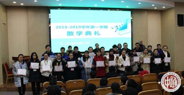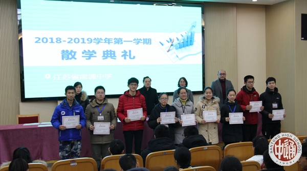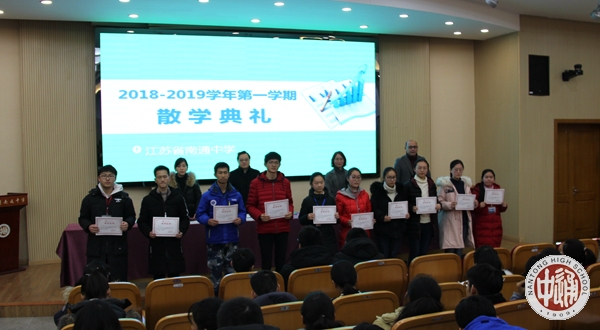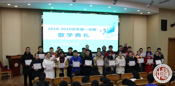 会上沈惠祥副校长对一学期工作做了简要总结和点评。他说,今年学校荣获2017-2018年国家公共机构能效领跑者称号、被教育部评为“首届全国中小学国防教育示范学校”、成功上榜第八届“全国百强中学”,并获评省“高中物理教学研究基地学校”、省“华文教育基地单位”。学校团委获得“江苏省五四红旗团委”、“江苏省优秀中学共青团组织”荣誉称号。作为我市唯一获得首届“全国文明校园”殊荣的学校,成锦平校长受邀参加全市文明城市建设大会,代表学校接受市委颁发的“全国文明校园”牌匾;作为全国120所知名高中的名校长代表,成锦平校长应邀参加北京大学120周年华诞盛典,并获得北京大学校长亲自颁发的表彰“喜报”。