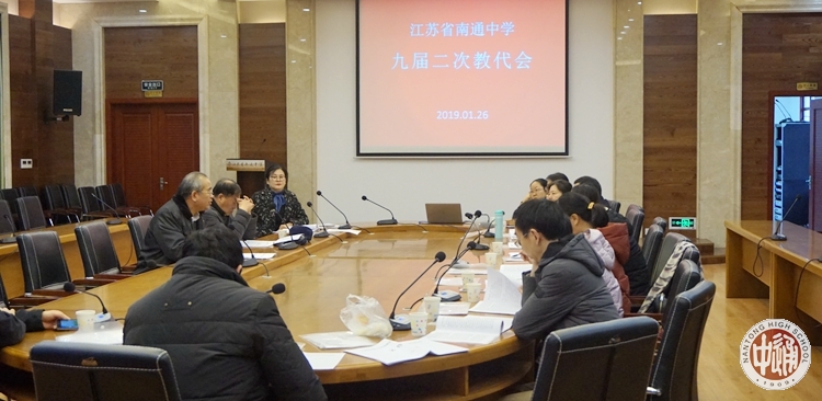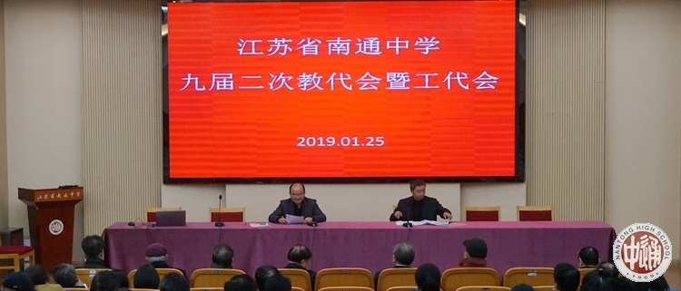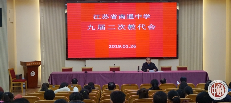1月25日下午2:00,学校在科学楼三楼报告厅召开了九届二次教代会全体代表和全体工会会员会议。会上,校党委书记陈文辉致本次会议的开幕词,成锦平校长作了2018学校年度工作报告。下午4:00,召开了九届二次教代会全体代表会议。与会代表听取了校工会主席刘伟忠所作的《2018年工会工作报告》,后勤处主任王平所作的《2018年学校财务工作报告》,刘忠保副校长关于《江苏省南通中学高品质示范高中建设规划》编写的说明、《江苏省南通中学关于引进优秀骨干教师岗位晋级办法的暂 行规定》(讨论稿)的解读校工会副主席卞秀凤所作的“九届一次教代会汇报提案处理情况”的通报。