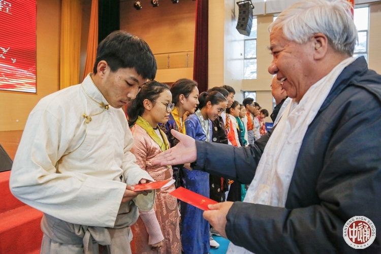 一年来,社会各界给予西藏班同学在学习、生活上无微不至的关怀。此次活动,校关工委的老师们为藏班同学送来了丰富的水果慰问品。活动现场,还举行了简朴而温馨的老三届理事会“暖心工程”爱心资助仪式,校领导和资助代表为12位受助同学送上了慰问金。老三届校友理事会会长熊淦集老师发表了热情洋溢的讲话,鼓励同学们继续努力,不断进步。