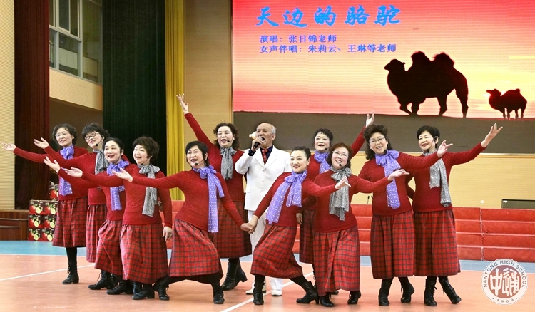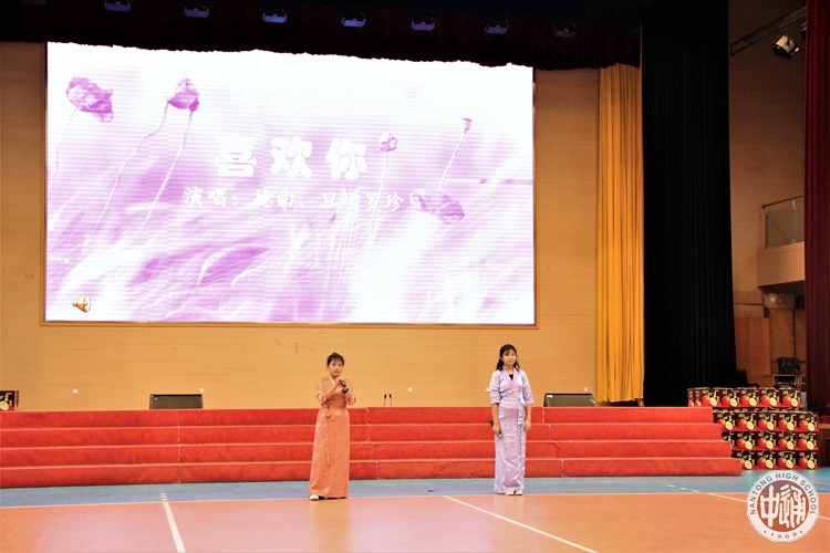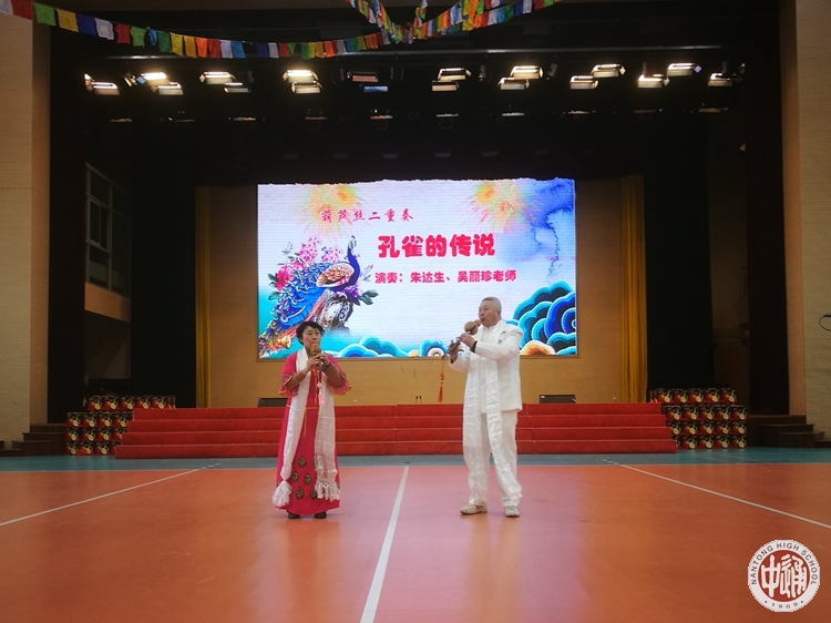 伴随着高一藏班同学热情洋溢的《洗衣歌》合唱,联欢活动正式拉开了序幕。一曲结束,同学们缓缓走下舞台,将手中洁白神圣的哈达献给了在场的老师们,表达新年最美好的祝福。精彩的节目一一呈现。高一9班陈明欢同学的配音表演秀《声临其境》不但展示了自身的高超配音技巧,还带动了现场观众热情参与;集体舞蹈《吉祥祈愿》展现了热闹欢腾的祝福场景;德曲和旦增罗珍同学一曲合唱《喜欢你》,富有磁性的声线更是直击人心;李丁睿、云丹卓玛同学带来的朗诵《汉藏情,你我心》再次诠释了在通中大家庭温暖的怀抱中,汉藏学子同呼吸、共命运,汉藏一家亲的浓浓暖意。张日锦、朱莉云、王琳等老师带来歌曲《天边的骆驼》展现了大漠辽阔壮美之景;朱达生、吴丽珍老师的葫芦丝二重奏《孔雀的传说》别具民族风情;倪建平老师深情朗诵《大漠胡杨的心声》,将胡杨那份执着追求的坚韧意志传递给每个人;在习尧、陈鑫芳等老师带来的表演曲《思念》中,同学们的心仿佛跨过千山万水,飞向那遥远的故乡。