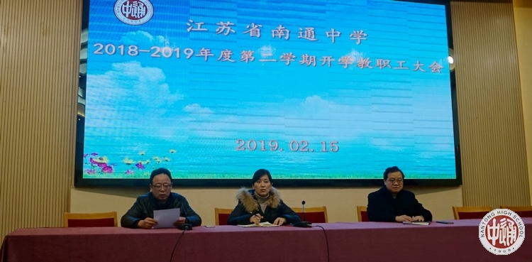 成校长强调,2019年,注定是通中发展历史上不平凡的一年,在这承前启后的关键时刻,我们更要不忘“立德树人”的初心,牢记“一聚、二新、三高”的使命,高点定位、创新路径、奋勇争先、砥砺前行,努力实现南通中学的高品质发展、超越性发展、可持续发展,全力开启学校110周年精彩的崭新华章。