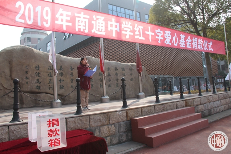 仪式上,学校爱心基金会向全校师生通报了2018年度接收捐助善款及使用情况。2017年12月底,江苏省南通中学爱心基金余额为517087.08, 收取学生拾金不昧款100元,慰问困难学生2600元。截至2018年2月底,江苏省南通中学爱心基金余额为514587.08元。2018年3月份爱心捐款活动中,全校师生实际爱心捐款共计88640.40元,2018年3月至2019年2月,用于南通中学患病职工及困难学生慰问共计支出51939.4元,代表江苏省南通中学向红十会“博爱在南通,人道万人捐”捐款20000元,向南通市慈善总会“温暖他人,快乐自己”慈善一日捐捐款10000元。截至2019年2月底,江苏省南通中学爱心基金余额为521288.08元。
