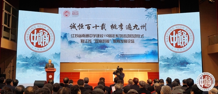 2019年,江苏省南通中学迎来建校110周年华诞。为传承“诚恒”精神,凝聚通中力量,共襄教育盛事,3月9日上午9:00,“江苏省南通中学建校110周年庆祝活动启动仪式”在学校健雄馆隆重举行。南通市市委常委、宣传部长陆卫东,南通市人民政府副市长徐新民,著名校友、中国科学院院士李大潜,江苏省教育厅、江苏省教育考试院、南通市教育局、南通市民政局相关领导,南京大学、东南大学、苏州大学等省内高校相关领导,南通市相关普通高中校长,学校历届校友代表出席启动仪式。仪式由校党委书记陈文辉主持。