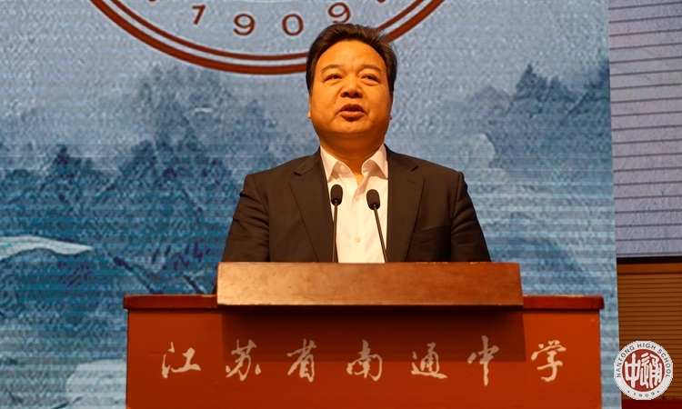 陆卫东部长在致辞中指出,110年来,通中广大师生始终与民族共命运,与时代同进步,在追求理想的道路上种下教书育人的常青树,在南通发展的史册上写下了自己的辉煌篇章;南通中学的发展历程,是一部见证南通教育事业蓬勃发展的历史,是一部培育江海学子爱国爱家的历史,更是一部展现南通江海儿女聪明才智的历史,令全体江海儿女深感骄傲与自豪。陆部长希望作为南通基础教育“领头雁”的南通中学要以举办110周年校庆为新的起点,勇于担当时代使命,秉承优良的校风学风,弘扬改革创新精神,努力把学校建设成为特色鲜明的明星高中、一流高中;希望南通中学的广大校友,常忆乡音乡情,铭记母校教诲,一如既往地关心母校发展、支持家乡建设。