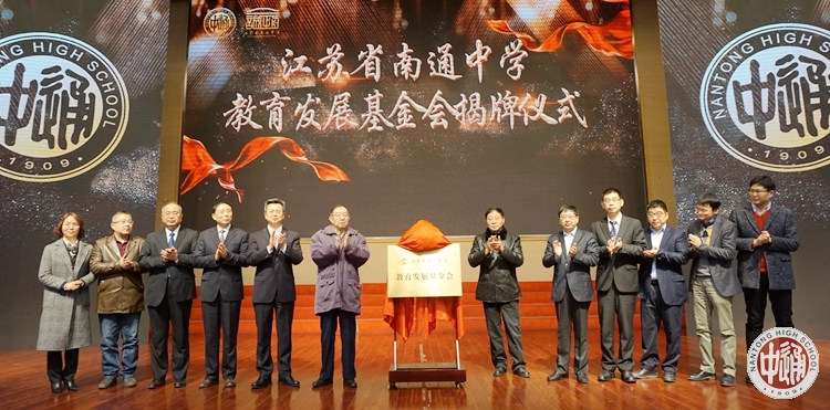 3月9日上午,江苏省南通中学教育发展基金会在通中校庆110周年启动仪式上正式揭牌。热心学校公益事业的企业家、社会贤达,关心母校发展的老校长、校友亲临盛会。南通市民政局局长王国平宣布基金会成立的批文,并与教育局局长郭毅浩、“教育发展基金会”名誉理事长李大潜、汪乾荣为“教育发展基金会”揭牌,为基金会成立捐助注册资金的通中校友季余华、徐峰、朱蔚鹏、刘潇参加揭牌仪式,同与会的高校、兄弟学校领导及1000多名通中师生和离退休老同志一道,共同见证了基金会的成立。李大潜院士作为基金会名誉理事长、通中校友代表讲话。