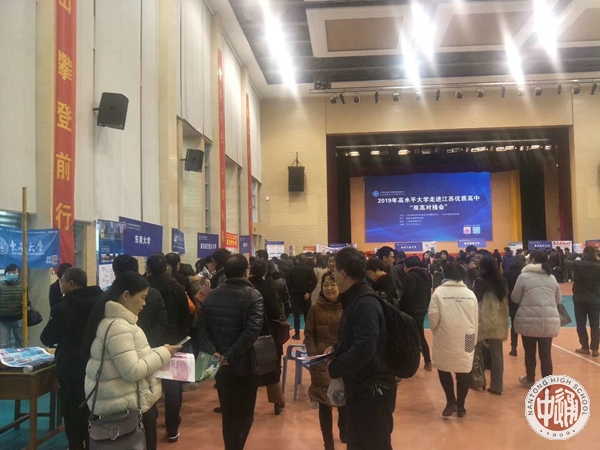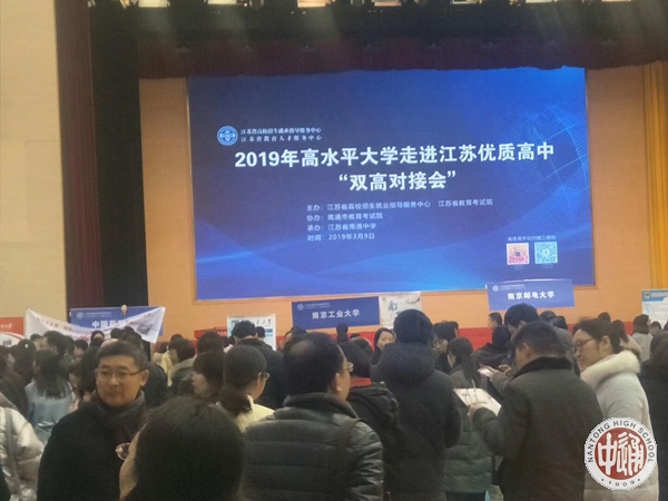 3月9日下午,2019年高水平大学走进江苏优质高中“双高对接会”在我校举行。本次活动由江苏省高校招生就业指导服务中心、江苏省教育考试院主办,南通市教育考试院、江苏省南通中学承办。南京大学、东南大学、苏州大学、南京师范大学、中国药科大学、南京医科大学等十多所省内知名高校通过现场咨询、招生宣讲等形式,面向我市高中师生及家长介绍相关招生政策,提供学校办学特色、专业优势、人才培养和升学就业等方面的权威资讯,开展生涯规划指导。咨询台前人头攒动,气氛热烈。家长和学生与高校老师积极互动,大家纷纷表示,本次活动为考生明确目标大学及专业提供了有力帮助。