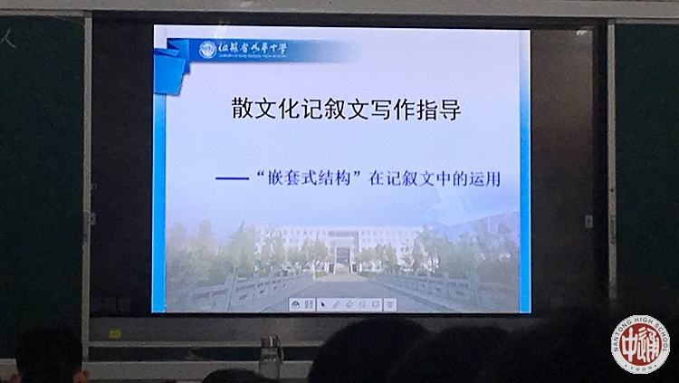 如皋中学高三语文备课组特地推出了一节题为《散文化记叙文写作指导——“嵌套式结构”在记叙文中的运用》的作文指导课,任课教师的教学设计精巧,师生互动精彩流畅,为听课老师呈现了一堂高质量的高三作文复习课。