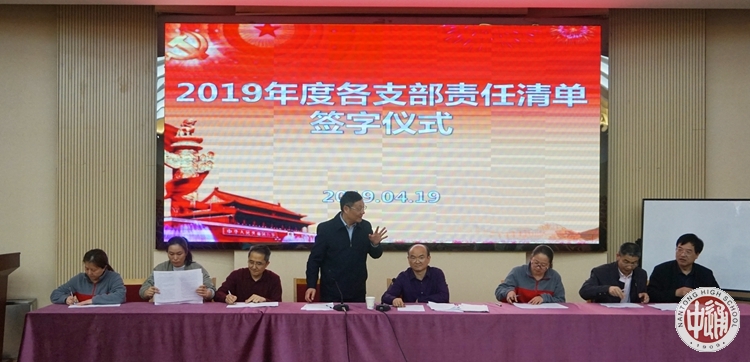 会上,刘忠保副校长宣读了关于表彰2018年度先进党支部、优秀共产党员、先进读书个人、党员教师志愿服务先进个人的名单;陈文辉书记、刘忠保副校长、沈惠祥副校长、陈建云副校长等出席会议的校领导依次为受表彰的党支部和个人颁奖;校党委与在职7个党支部签订了“支部责任清单”。