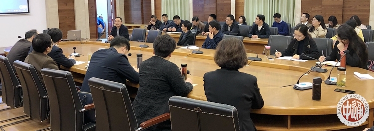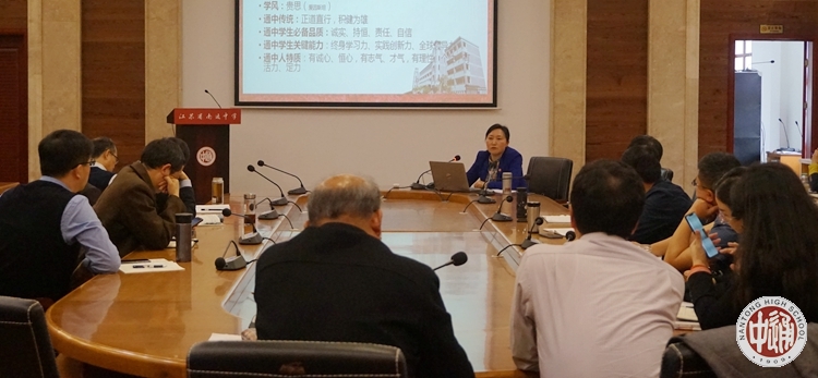 教科处陆军主任参与了接待工作,并且给来宾简要介绍了我校的办学历史,以及筹备参加省高品质示范高中创建方案汇报论证、举行校庆系列活动之学校发展大会等情况。