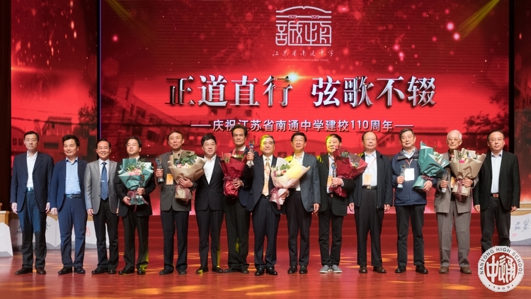 难忘通中,难忘代代通中人!正是一代代“通中人”的辛勤耕耘和无私奉献,成就了通中的璀璨与辉煌,校长群体就是其中的典型代表。会上,1958届校友、江苏省委原副书记顾浩,1966届校友、解放军军事科学院原副院长任海泉中将,1981届校友、中科院院士、国家自然科学基金委员会副主任陆建华,市领导沈雷、黄卫成、徐新民、陈宋义共同为历任校领导代表颁发“南通中学建校110周年纪念奖杯”。