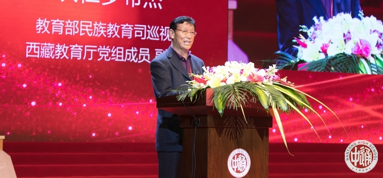 “精品高中、多元发展”是我校的一大办学特色。会上,江苏省民族宗教事务委员会副巡视员张全录致贺词;教育部民族教育司巡视员、西藏教育厅副厅长次仁多布杰先生代表西藏教育厅宣读了贺信;解放军东部战区空军政治部副主任孙昌兵少将代表空军致贺词。