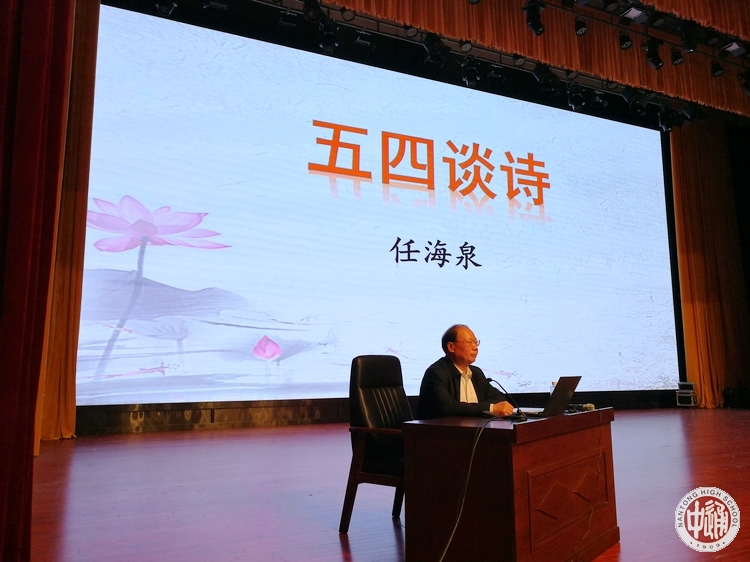 5月5日,崇雅楼内,镁光闪耀、掌声雷动。我国军事科学院副院长、南通中学66届校友任海泉中将再次回到母校,在与各界校友共庆母校110华诞的同时,也抽空与我校青年学子们展开了深入的交流。恰逢“五四”运动100周年之际,任海泉中将特意以“五四谈诗”为主题,以诗词发端,论五四精神,立强军之梦,唤青春斗志,为全体航空班和高二年级学生开设了一堂生动精彩的爱国主题教育报告会。沈惠祥副校长、学生处滕旻彦主任出席了活动。报告会由学生处主任助理田宇龙老师主持。