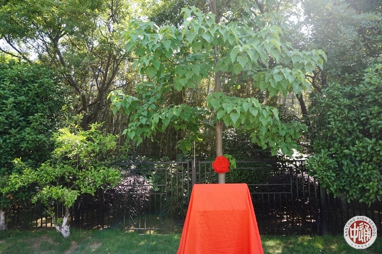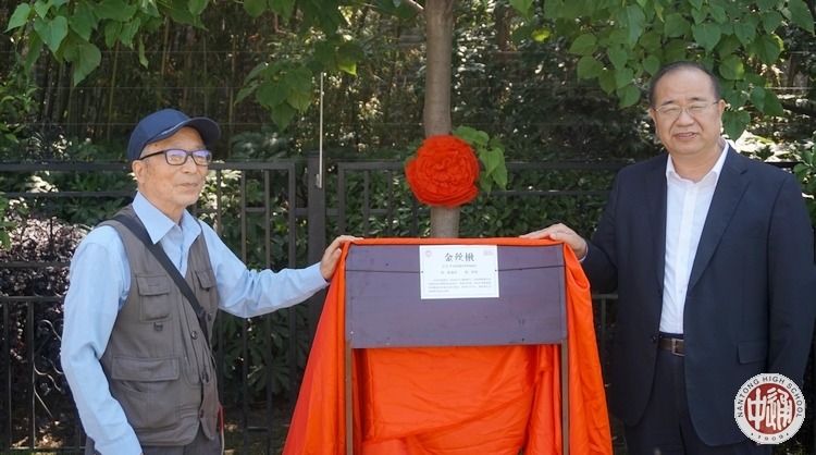 百十载栉风沐雨,百十载春华秋实,5月14日,庆祝建校110周年系列活动——校庆纪念树揭牌仪式在学校南校区举行。成锦平校长与我校生物学科退休教师顾尔如老师共同为金丝楸纪念树揭牌。