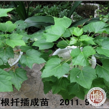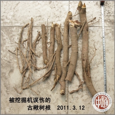 据了解,此棵金丝楸是学校600年老楸树的根生苗。2011年植树节,校园为古楸树更新培土,顾老师发现有部分古树根被误伤,他将根捡回育苗。功夫不负有心人,当年育成5株古金丝楸的根生苗。2013年,顾老师把三棵根生苗送给学校,被栽在学校的楸园内,后移栽在南校区东侧绿化带的空隙处。