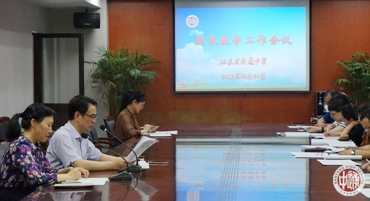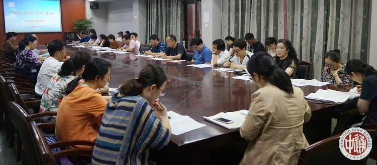 为及时布置期末教学各项重点工作,确保本学期教学任务圆满完成,6月4日下午,学校在科学楼一楼会议室召开期末教学工作会议。会议由教务处副主任顾军主持。陈建云副校长出席会议并讲话。高一、高二年级全体备课组长,全体学科主任参加会议。