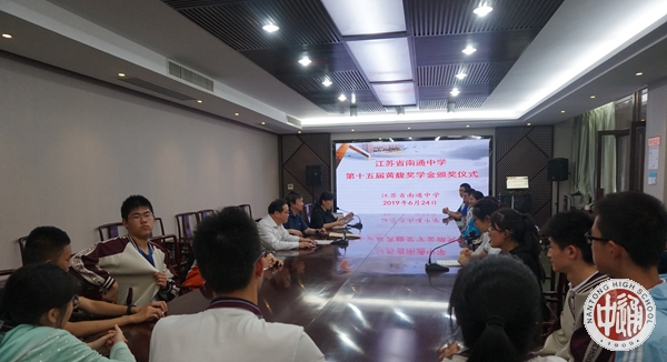 6月24日下午,我校第十五届黄馥奖学金颁发仪式在科学楼二会议室举行。黄馥校友的侄子黄小旋,学校副校长沈惠祥,学生处主任滕旻彦共同为获奖学生颁奖。