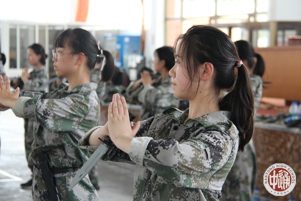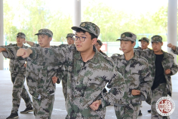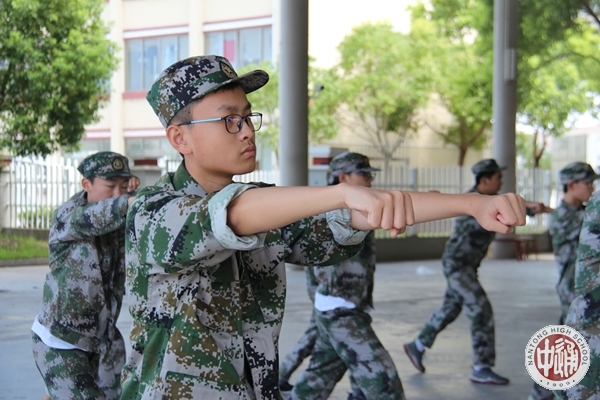 站军姿,踢正步,练打拳,即使肌肉颤抖,却依然在规范中执着,即使喉咙嘶哑,却依然要把通中几班的口号喊成最美的和音!短短几天的军训,让同学们明白, “纪律如铁,意志如钢”。