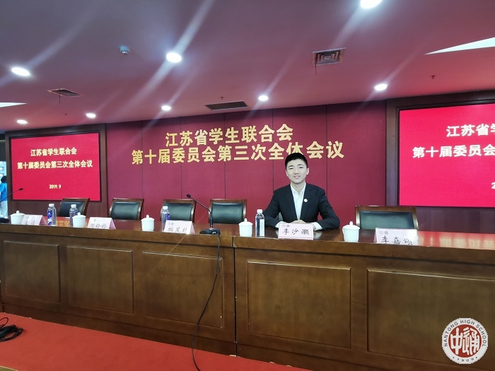2019年9月23日,江苏省学生联合会第十届委员会第三次全体会议在江南大学隆重召开。我校高二年级学生会副主席李沙灏代表校学生会参加了此次会议。