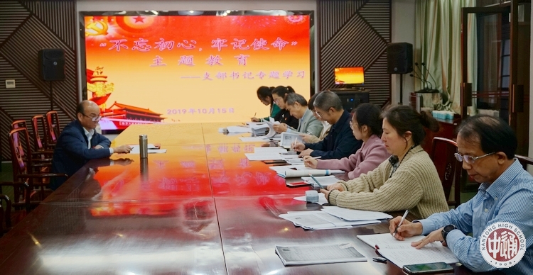 陈文辉书记指出,在全党开展“不忘初心、牢记使命”主题教育,是以习近平同志为核心的党中央统揽伟大斗争、伟大工程、伟大事业、伟大梦想作出的重大部署。陈书记对“不忘初心、牢记使命”主题教育支部学习工作提出如下具体要求:一是各党支部和全体党员要提高政治站位,深入学习领会习近平总书记重要指示精神,要学深悟透、融会贯通、真信笃行,增强贯彻落实的自觉性坚定性,确保把上级关于主题教育的部署要求不折不扣落到实处;二是各党支部、全体党员要把深入学习贯彻习近平新时代中国特色社会主义思想作为主题教育的首要任务,以理论滋养初心、以理论引领使命,不断增强“四个意识”、坚定“四个自信”、做到“两个维护”,在学思践悟中筑牢信仰之基、补足精神之钙、把稳思想之舵;三是各支部要以开展主题教育为契机,把严的要求、严的标准、严的措施贯穿管党治党全过程,强化正视问题的自觉,增强刀刃向内的勇气,发扬斗争精神、增强斗争本领,同一切影响党的先进性、弱化党的纯洁性的问题作坚决斗争,在革故鼎新中不断增强党的生机与活力;四是各支部要把密切党同人民群众的血肉联系作为主题教育的重要落脚点,教育引导党员自觉践行党的根本宗旨,牢牢把握办好人民满意教育这个最终目标,不断提高立德树人本领,顺应人民群众对美好生活的向往,着力解决教育领域群众最关心最现实的利益问题。