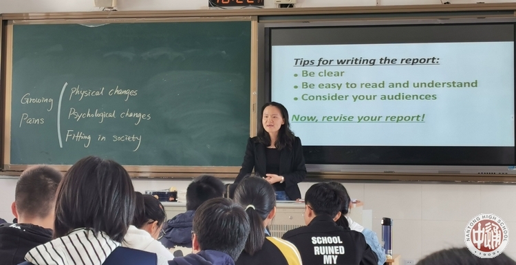 陆艳老师以文本阅读的形式进行课堂的导入,引导学生思考,提供话题选择。在小组展示的环节中,学生列提纲给要点,充分做到了自主学习。不仅如此,学生的思维品质和表达能力都得到了提高,学生们的精彩展示把课堂气氛推向了高潮。