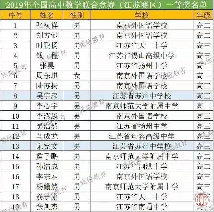 2019年全国高中数学联赛成绩揭晓,南通中学数学学科再创佳绩。