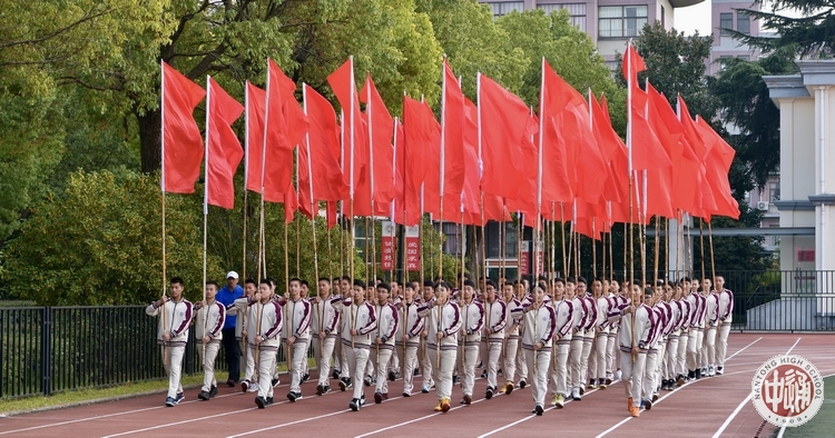 陈建云副校长发表了热情洋溢的讲话。陈校长指出,沐浴着金秋十月和煦的阳光,我们迎来了学校第144届田径运动会暨第八届阳光体育运动会,这是全体通中学子校园生活中的又一盛事;1919年,教育先驱蔡元培先生为勖勉通中人,欣然题词“积健为雄”,此后,“积健为雄”成为我们学校的优良传统,成为学校文化的组成部分;2019年通中健儿成绩喜人,校女排获江苏省第26届“通中杯”中学生排球锦标赛第一名、2019年江苏省青少年排球锦标赛女子甲组第一名,校足球队参加第一届“老八所”重点中学足球赛获一等奖,学校荣获2019年省中小学棋类锦标赛高中组团体总分第一名、 2019年省中小学棋类锦标赛高中组国际象棋团体总分第一名、2019年省中小学棋类锦标赛高中组围棋团体总分第一,校羽毛球队荣获2019年江苏省青少年羽毛球冠军赛高中组混合双打第二名。