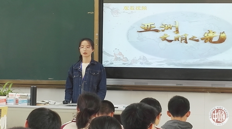 上午第3课,南通大学马克思主义学院思政课教学专业实习生李双凤老师,在高一(11)上汇报课,执教的课题是《文化在交流中传播》。李老师,联系生活设置教学情境和学科任务,引导学生辨析文化传播的途径和手段;结合“一带一路”的宏大主题,组织学生探究中外文化传播的意义、挑战和对策。李老师的课准备充分、课件设计精美、教学流程清晰、师生互动深入。