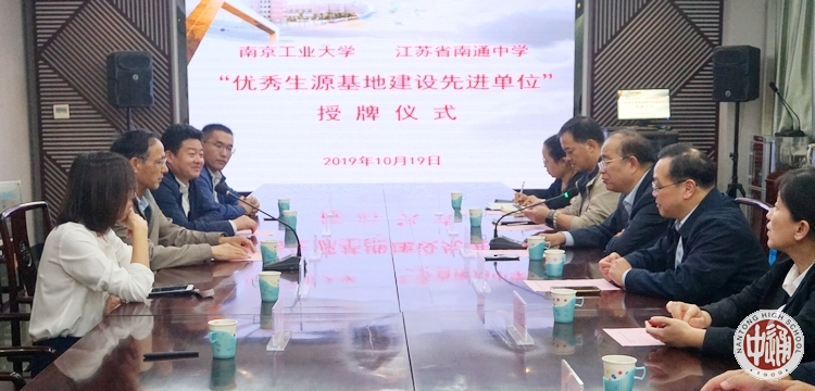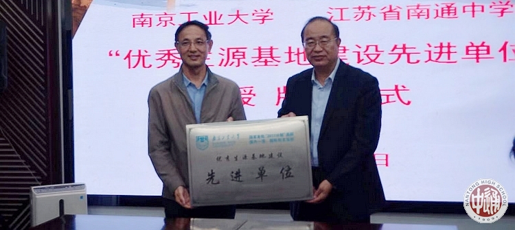 授牌仪式由沈惠祥副校长主持。成锦平校长代表我校致欢迎辞,并介绍了我校在创新人才培养方面的举措。南京工业大学吴胜红副校长向我校授予“优秀生源基地建设先进单位”铜牌,介绍了学校近几年的发展状况,并对我校输送优秀生源表示感谢。随后,双方就中学与高校在人才培养、招考方案、生源推荐等方面进行了交流。