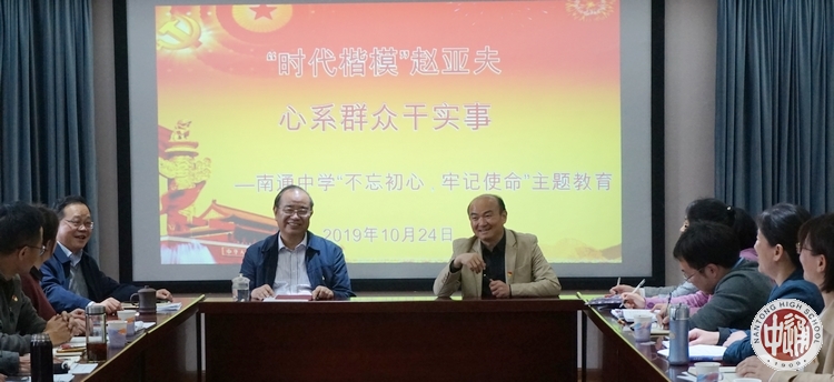 习近平总书记赞扬“时代楷模”赵亚夫同志“做给农民看、带着农民干、帮助农民销、实现农民富”,基层需要一大批像他这样的干部。10月24日下午,在科学楼三楼名师工作室,校党委举行“不忘初心、牢记使命”主题教育,组织全体办公会成员集中学习赵亚夫同志先进事迹,并观看宣传片。党政办孙晨副主任领学,党政办副主任蒋卫星、学生处副主任邬云琰带头发言。