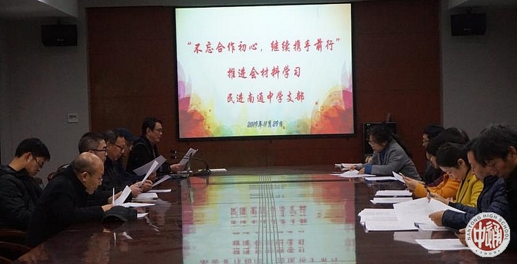 11月29日,民进通中支部在科学楼一楼会议室开展“不忘合作初心 继续携手前行”主题教育活动,活动由顾军主委主持。